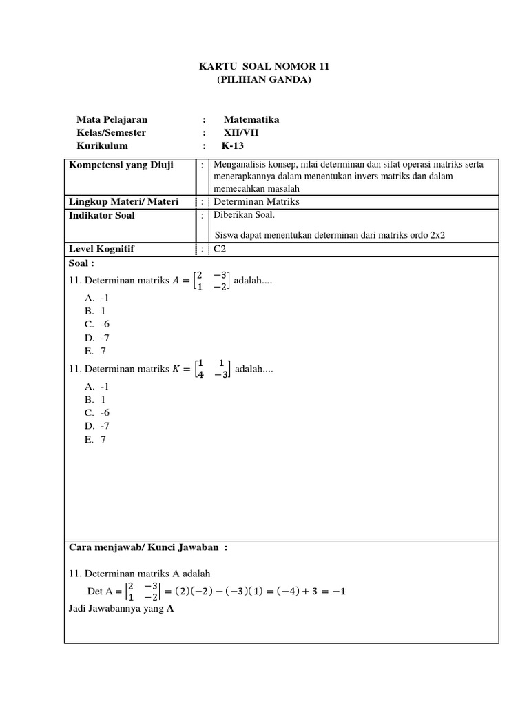 15+ Contoh Soal Determinan Matriks Ordo 2x2 Dan Jawabannya ...
